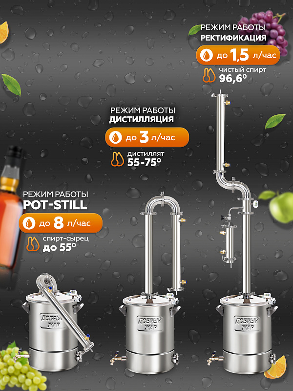 Позволит получить чистый спирт 96.6° даже если вы новичок. Настраивайте интенсивность отбора с точностью до капли удобно и с плавной регулировкой.